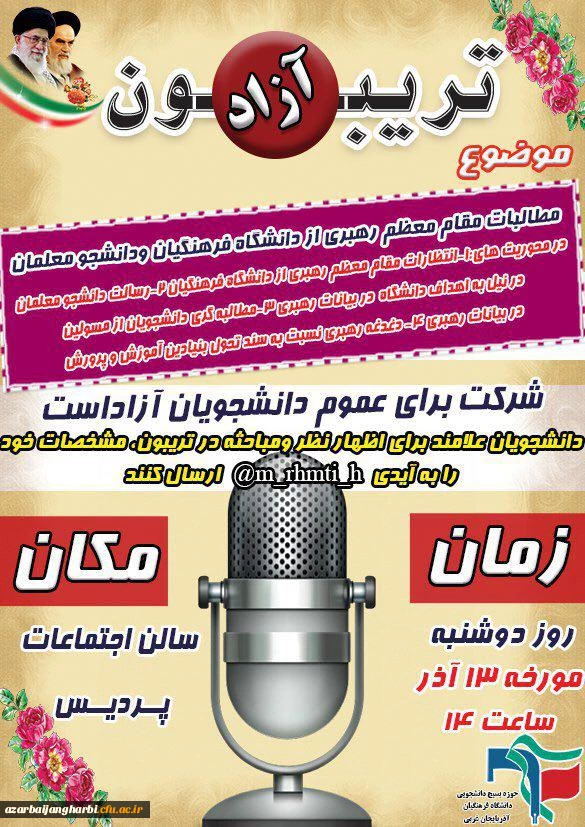 به مناسبت گرامیداشت 16 آذر روز دانشجو تریبون آزاد با موضوع مطالبات رهبری از دانشگاه فرهنگیان و دانشجو معلمان برگزار شد
