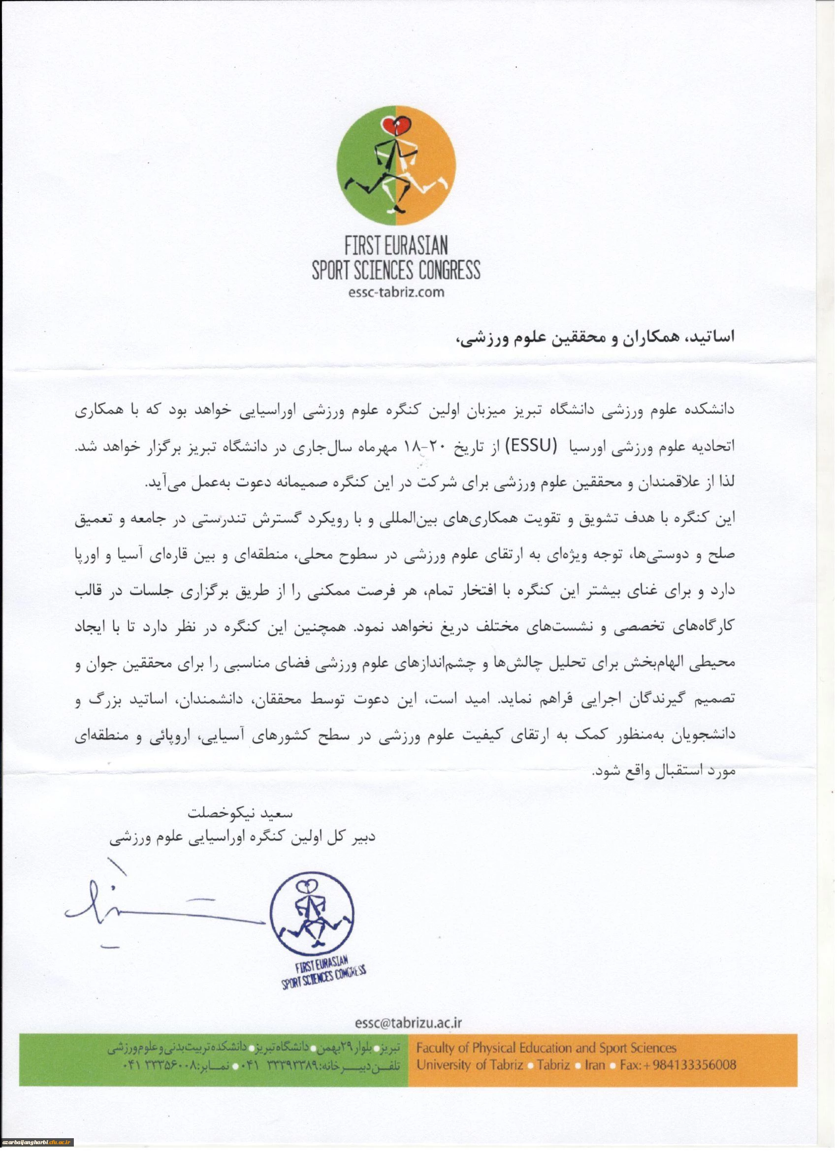 برگزاری اولین کنگره اوراسیایی علوم ورزشی 3