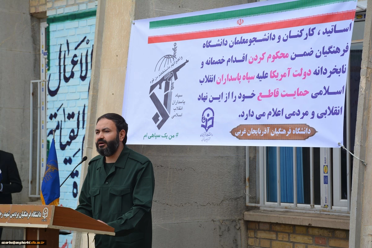 دانشجویان، اساتید وکارکنان دانشگاه فرهنگیان آذربایجان غربی در تجمع اعتراضی خود اقدام نابخردانه و وقیحانه آمریکا را در اعلام نام سپاه پاسداران انقلاب اسلامی در ردیف گروه های تروریستی محکوم نمودند 6