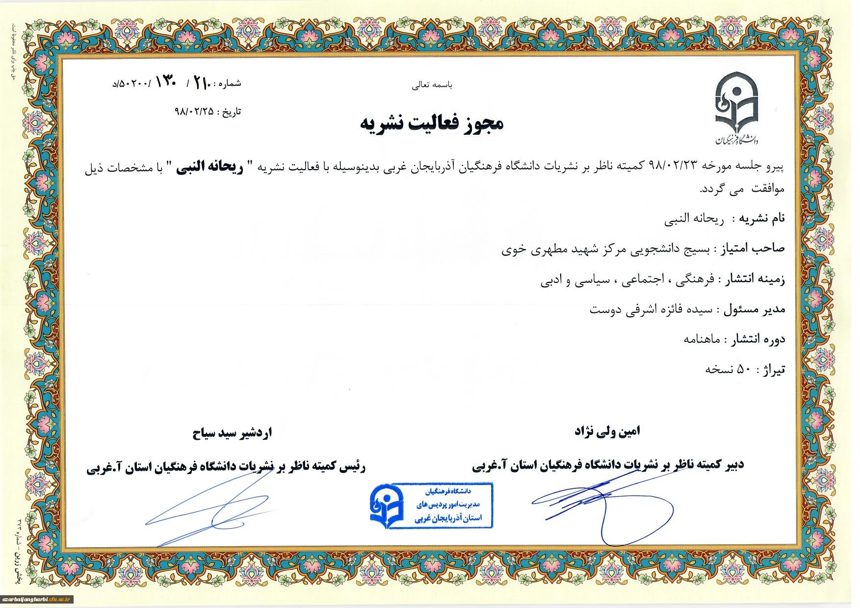 تشکیل اولین جلسه کمیته ناظر بر نشریات دانشگاه فرهنگیان استان آذربایجان غربی در سال 98 4