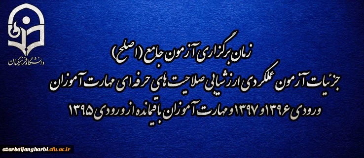 اطلاعیه شماره 2 مرکز سنجش شایستگی های منابع انسانی دانشگاه فرهنگیان: زمان برگزاری آزمون جامع (اصلح) جزئیات آزمون عملکردی ارزشیابی صلاحیت های حرفه ای مهارت آموزان ورودی 1396 و 1397 و مهارت آموزان باقیمانده از ورودی 1395