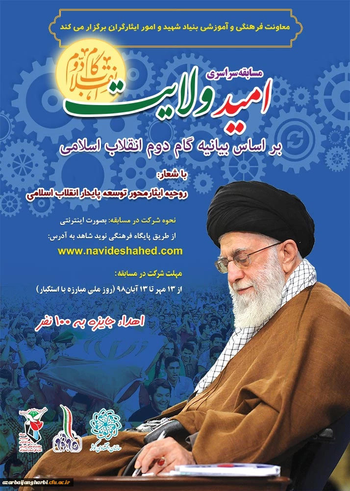 امتیاز دهید : مسابقه سراسری امید ولایت بر اساس بیانیه گام دوم انقلاب اسلامی چهارشنبه 8 آبان 1398 ساعت 10:53