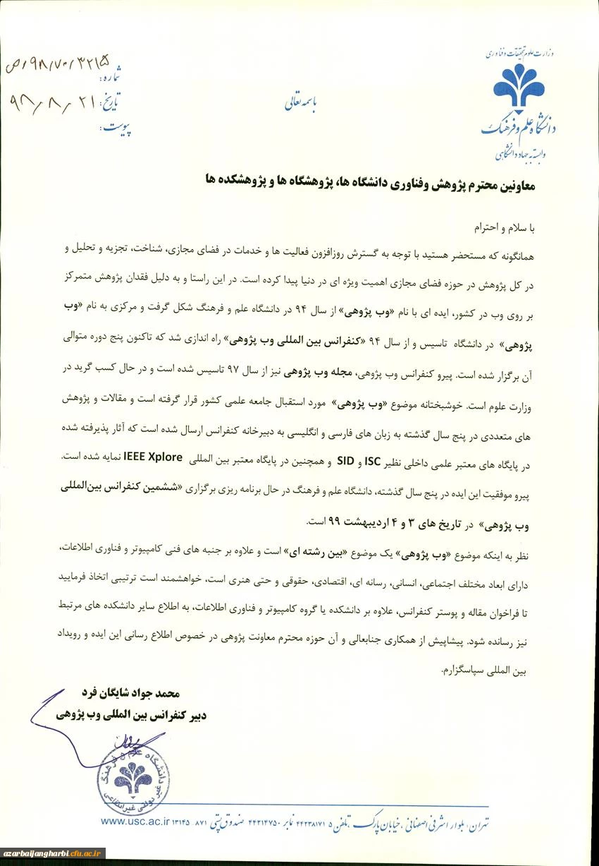 نامه فراخوان ششمین کنفرانس بین المللی وب پژوهی
