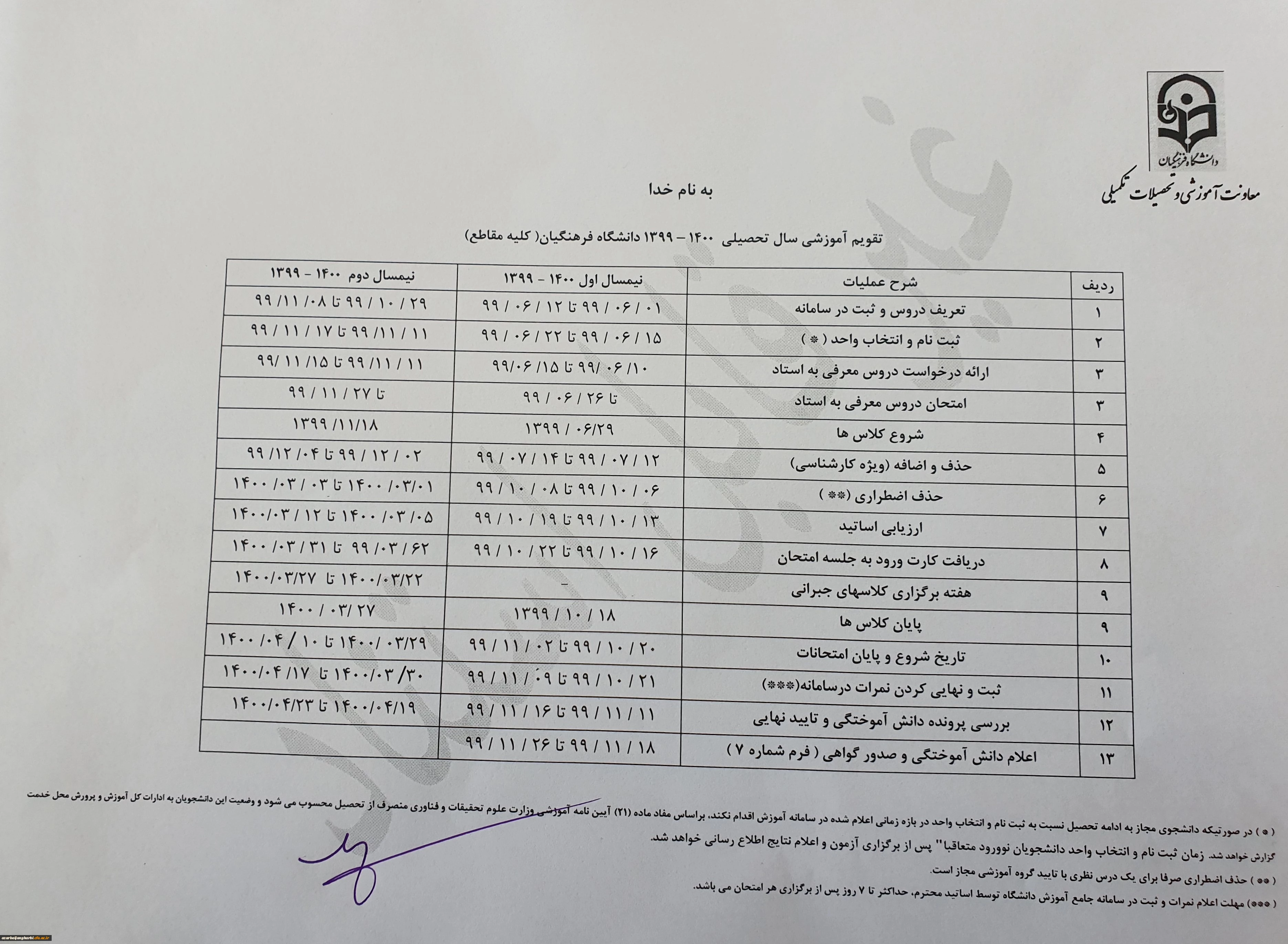 تقویم آموزشی کلیه مقاطع دانشگاه فرهنگیان 2