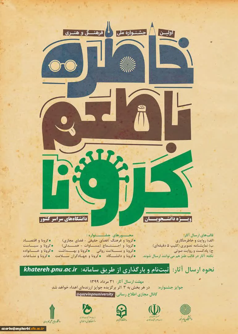 امتیاز دهید : اطلاع رسانی جشنواره خاطره نویسی و خاطره گویی دانشگاه پیام نور 2 دوشنبه 27 مرداد 1399 ساعت 11:24