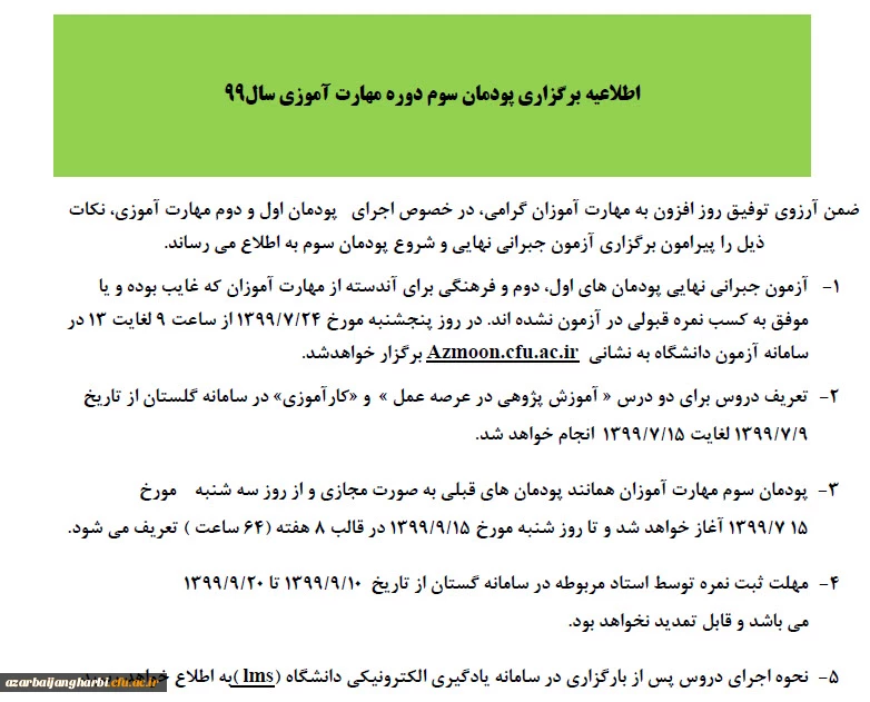 اطلاعیه برگزاری پودمان سوم دوره مهارت آموزی سال99 2