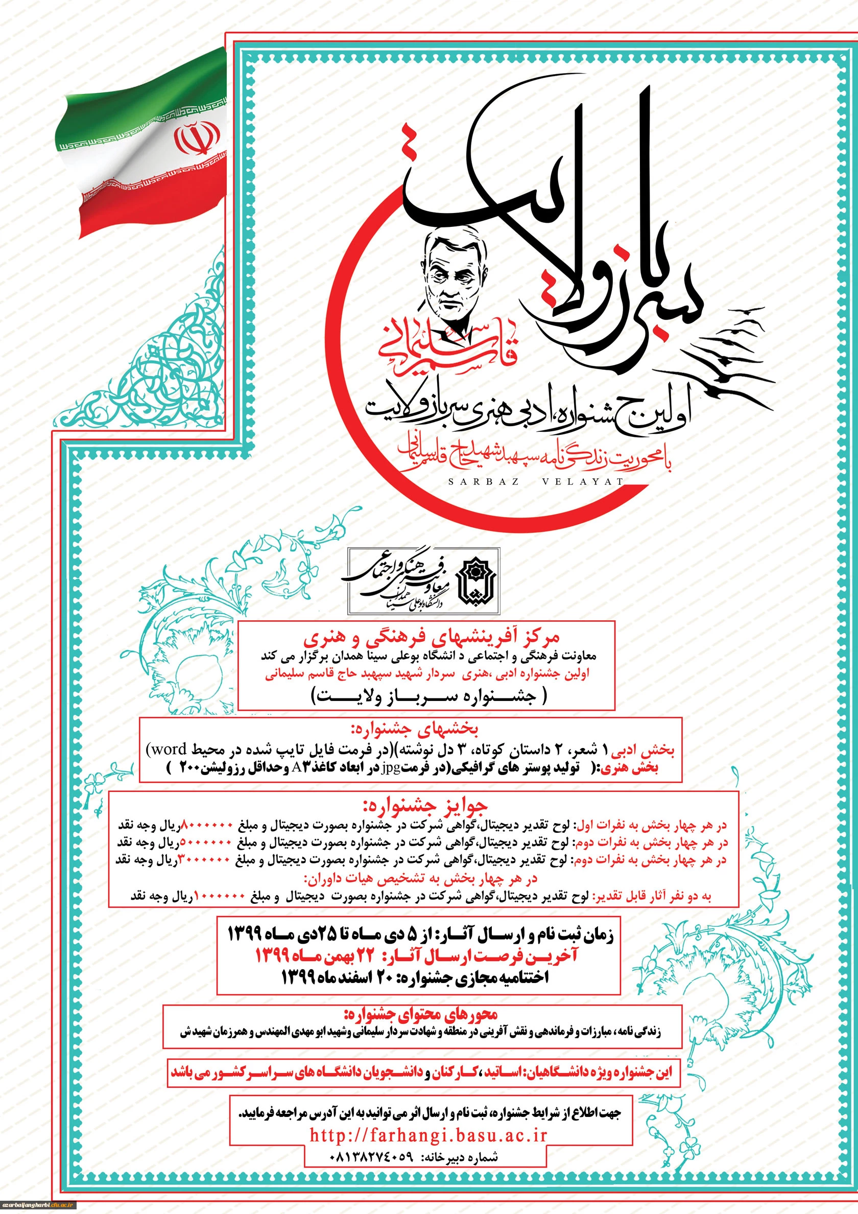 امتیاز دهید : اولین جشنواره ادبی هنری سرباز ولایت با همکاری دانشگاه بوعلی همدان 3 پنجشنبه 25 دی 1399 ساعت 10:49