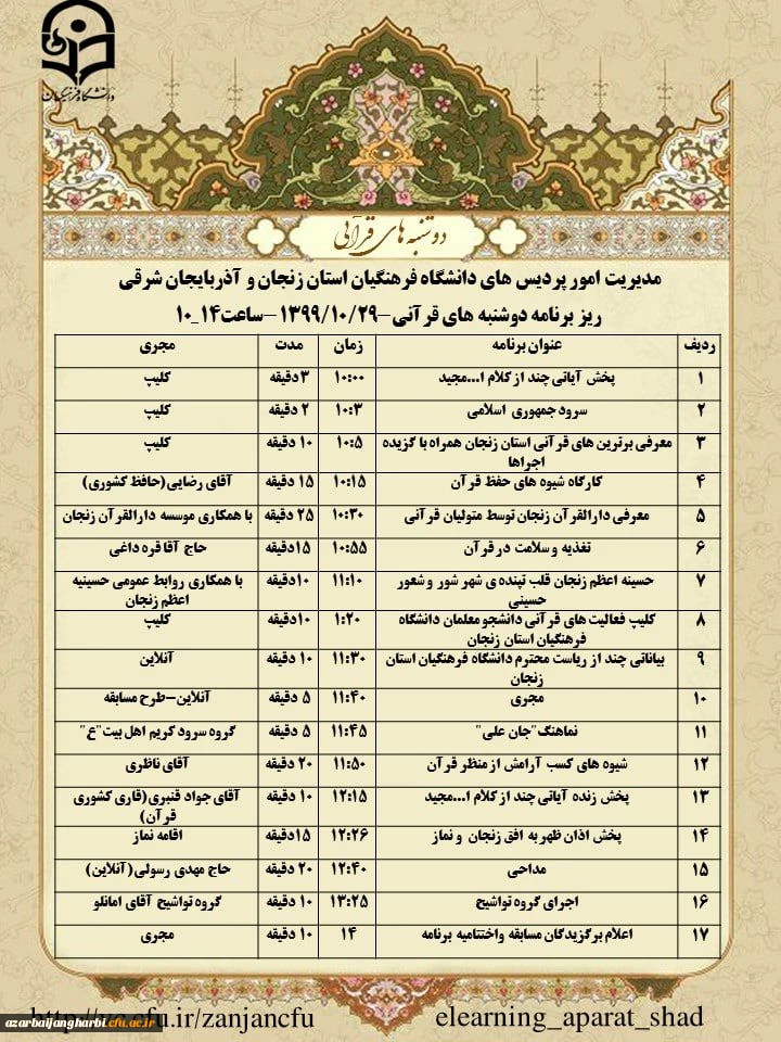 امتیاز دهید : برنامه دوشنبه های قرآنی به میزبانی استانهای زنجان و آذربایجان شرقی 3 یکشنبه 28 دی 1399 ساعت 9:25