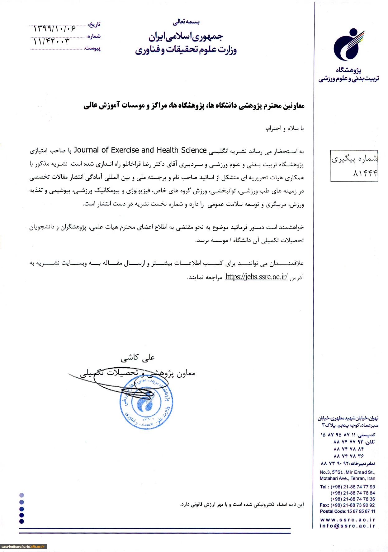 اطلاع رسانی فراخوان ارسال مقالات به نشریه انگلیسی پژوهشگاه تربیت بدنی وعلوم ورزشی