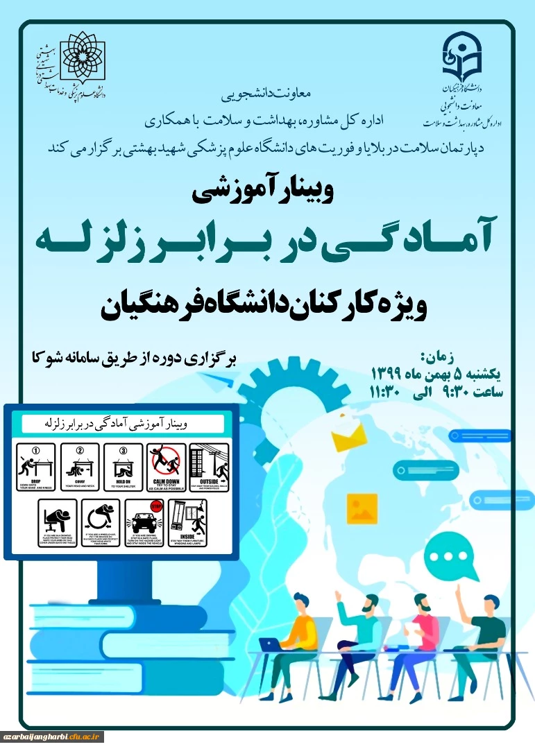 امتیاز دهید : وبینار آموزشی آمادگی در برابر زلزله ویژه کارکنان دانشگاه 2 پنجشنبه 2 بهمن 1399 ساعت 9:20