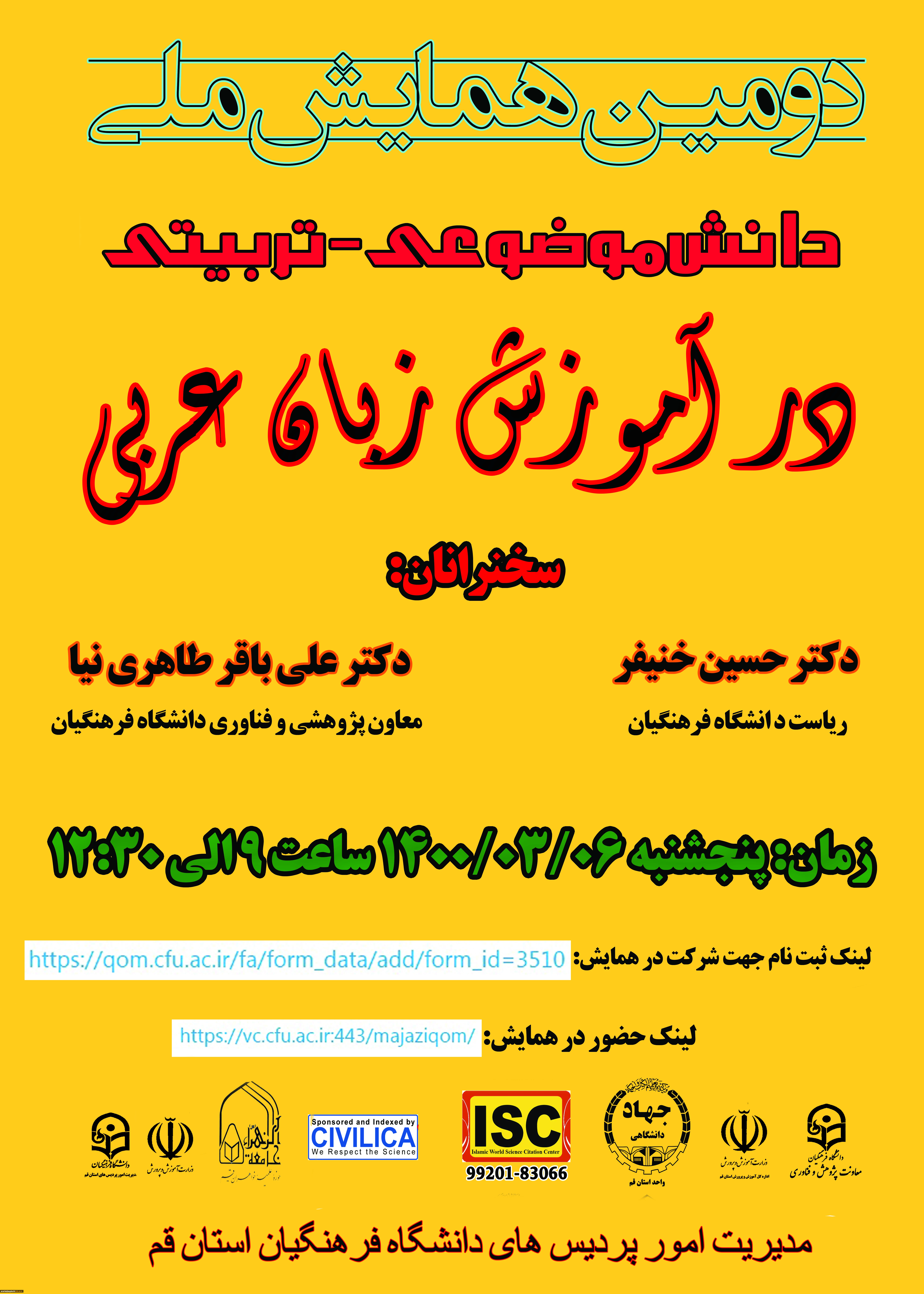 اطلاع رسانی برگزاری دومین همایش ملی( دانش موضوعی ـ تربیتی در آموزش زبان عربی )