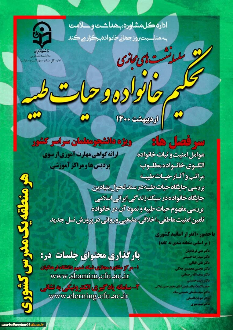 امتیاز دهید : اجرای برنامه عملیاتی 1400 برنامه تحکیم خانواده و حیات طیبه 3 چهارشنبه 5 خرداد 1400 ساعت 14:18