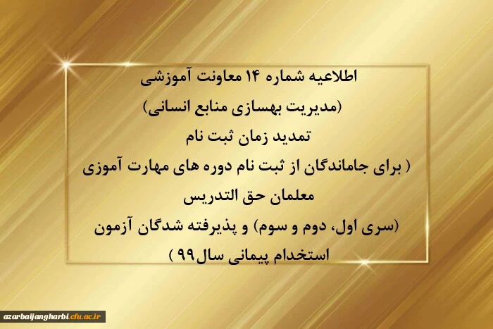 تمدید زمان ثبت نام ( برای جاماندگان از ثبت نام دوره های مهارت آموزی معلمان حق التدریس (سری اول، دوم و سوم) و پذیرفته شدگان آزمون استخدام پیمانی سال99 ) 2