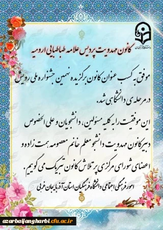 کسب عنوان کانون برگزیده نهمین جشنواره ملی رویش در مرحله دانشگاهی توسط کانون مهدویت پردیس علامه طباطبایی ارومیه 2