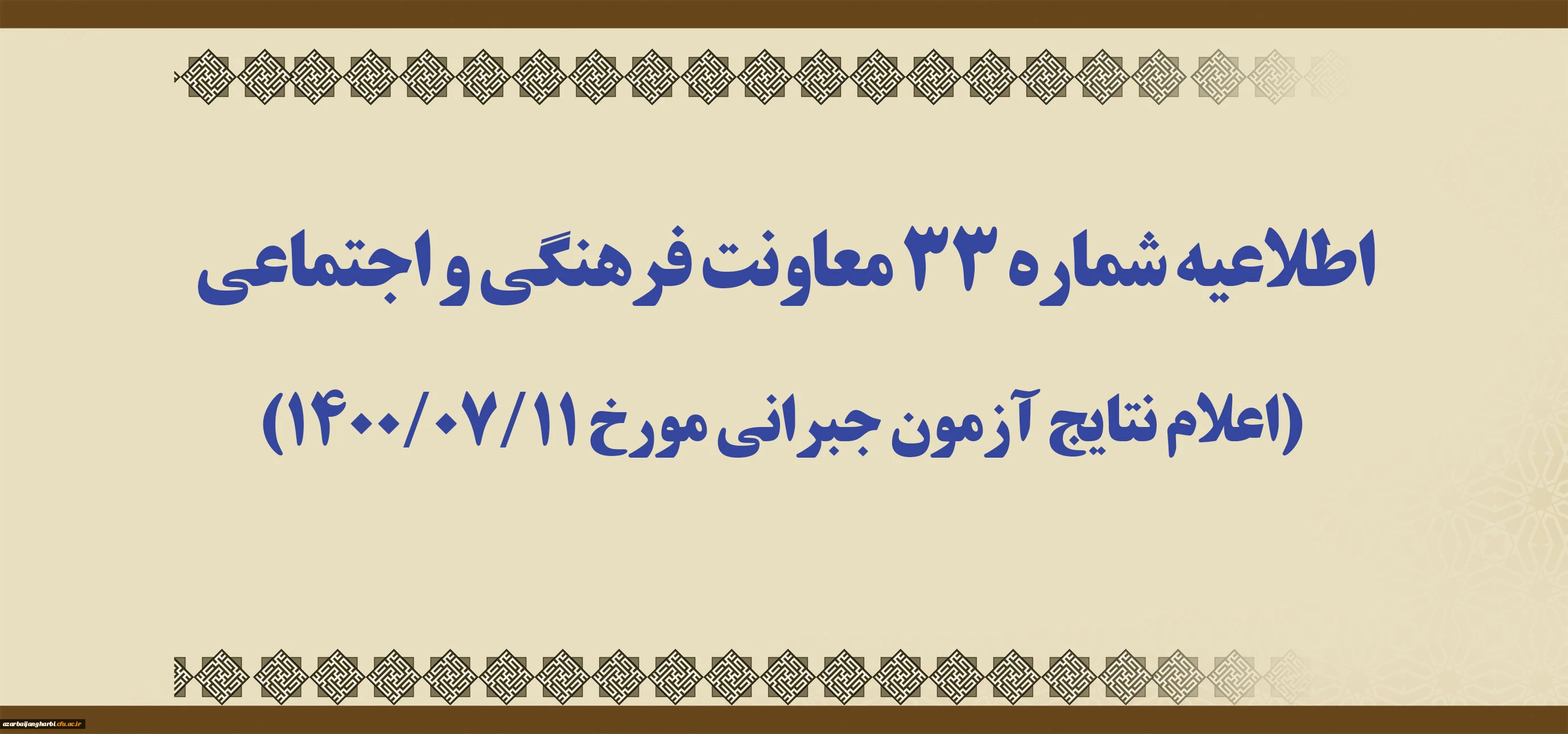 اطلاعیه شماره 33 معاونت فرهنگی و اجتماعی (اعلام نتایج آزمون جبرانی مورخ 1400/07/11) 2