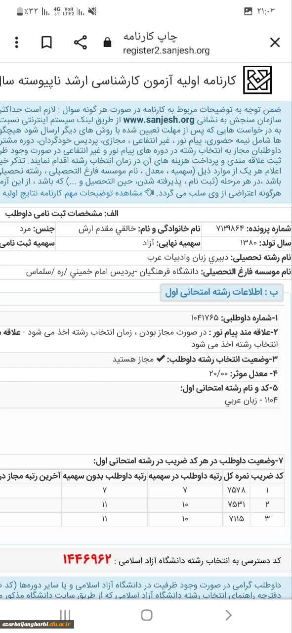 دانشجومعلم دانشگاه فرهنگیان استان آذربایجان غربی رتبه 7 آزمون کارشناسی ارشد را کسب کرد 2