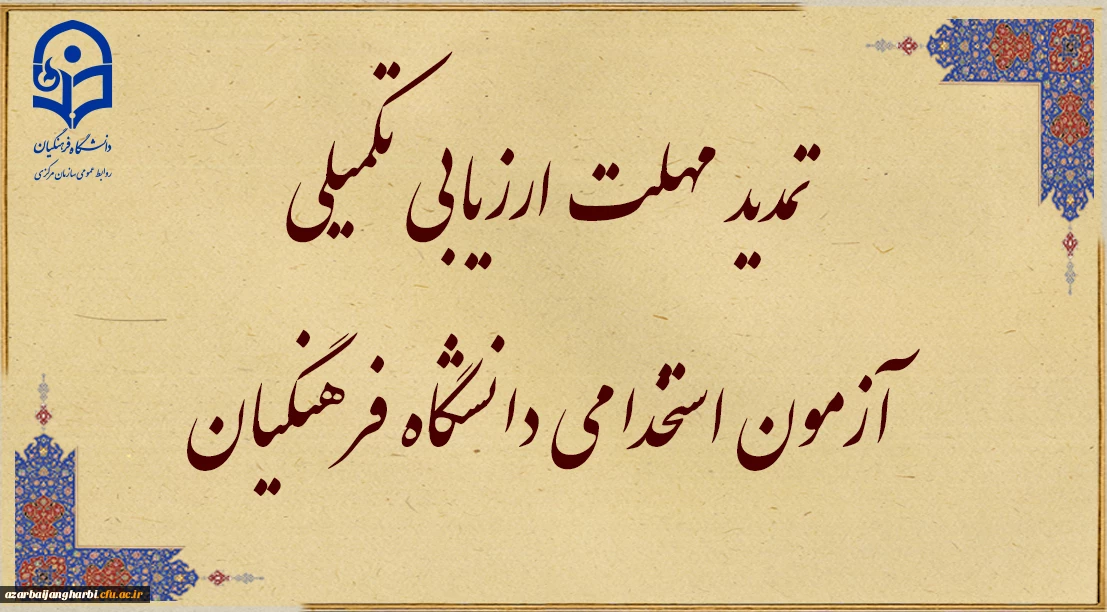 تمدید مهلت ارزیابی تکمیلی آزمون استخدامی دانشگاه فرهنگیان در یازدهمین امتحان مشترک فراگیر دستگاه های اجرایی کشور 2